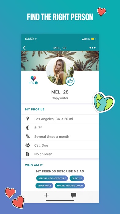 Your Compatibility Quiz results are then compiled to create a Personality Profile, an informative report about your character, lifestyle, relationship behavior and communication style. Based on this, eharmony does the work for you and matches you with compatible singles. So, you can complete your profile in our dating app and fill it out with personal information.