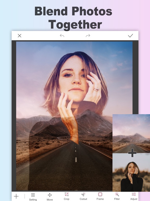 · Overlay blending, text and art stickers can be blended with photos, supporting various blend modes