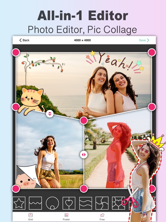 · Free Collage, add photos, text, stickers at will, support auto layout, can create an ideal collage or poster effects