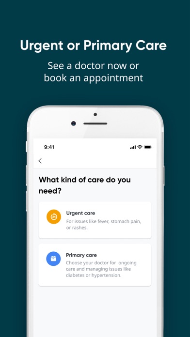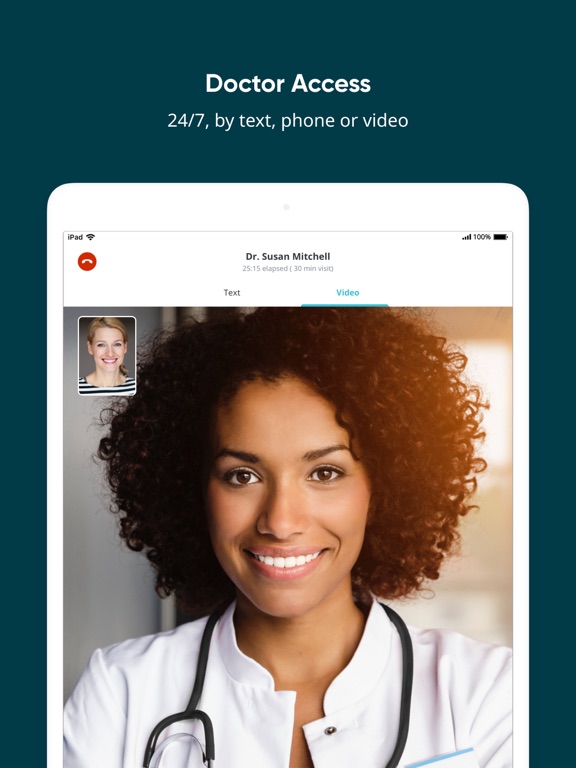• Urgent Care visits, just $30 each. Available 24/7. For time-sensitive issues like fever, stomach pain, or dizziness. Connects you with a doctor in one minute or less.