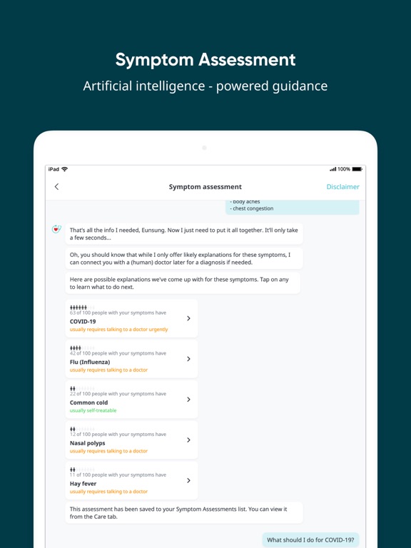 1. ASSESS your symptoms with our artificial intelligence-powered symptom checker