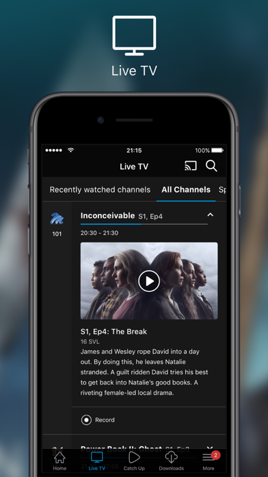 - Don’t want to use mobile data to watch shows or movies, download up to 25 videos on Catch Up while on WIFI to enjoy offline later across 4 devices.