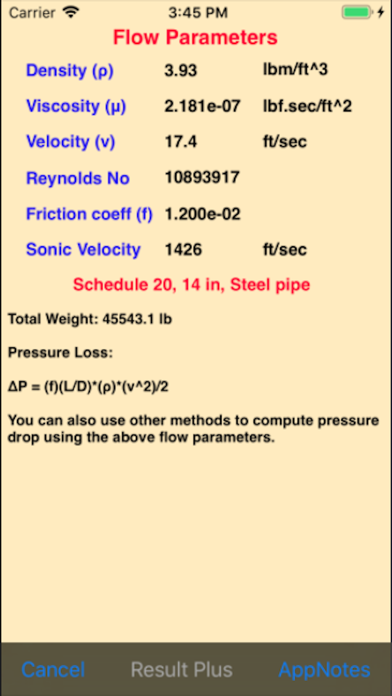 In addition, fluids that are not in the list, users can create a custom fluid with property data that can be saved and compute the pressure loss using the model provided in this app. Pressure loss is computed using Darcy’s equation, which gives a good estimate for both liquid and gases. For gases, the method is valid if the fluid velocity is within 40% of its sonic velocity. Also this app provides result of different flow parameters used in the computation of pressure loss.