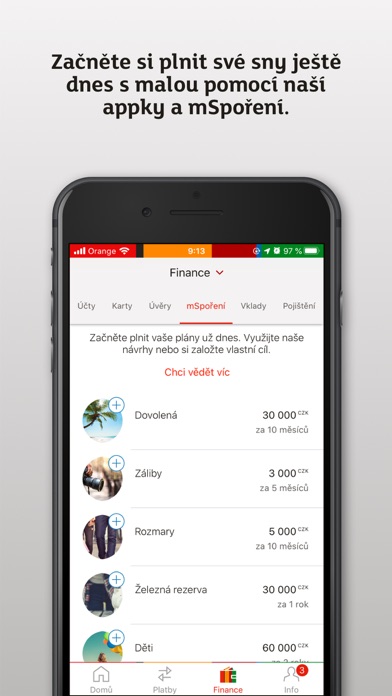 Účty a karty: V appce najdete mimo jiné přehledné informace o všech svých účtech, které máte zřízeny. Také můžete detailně spravovat své mSpoření! Appka navíc splní (téměř) všechny vaše sny o spravování karet, takže se nemusíte bát o jejich bezpečnost.