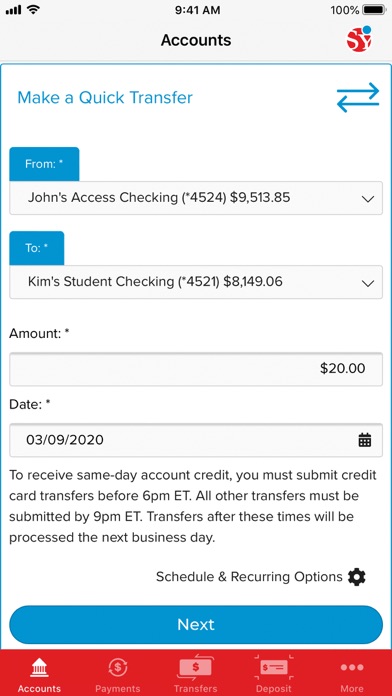 Move funds quickly and securely between your accounts