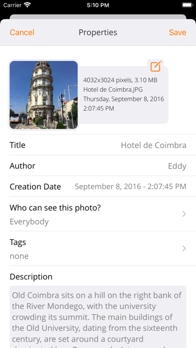 Piwigo for iPhone/iPad/iPod supplements the photo gallery software in the cloud Piwigo (v2.8 or higher):