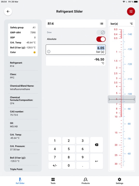 As a featured part of Ref Tools, you get all the features and functionality that made Refrigerant Slider a hit with millions of installers around the world. Quickly calculate pressure/temperature ratios and find essential information on over 80 refrigerants.