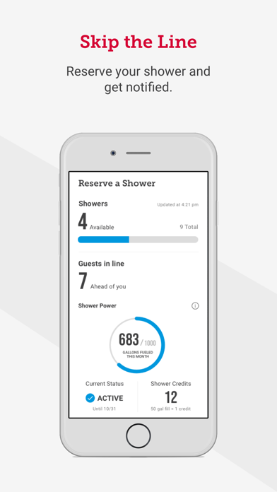 - Reserve your shower in the app when you arrive at a location. Get in line before even stepping into the store; you’ll be notified in the app when your shower is ready.