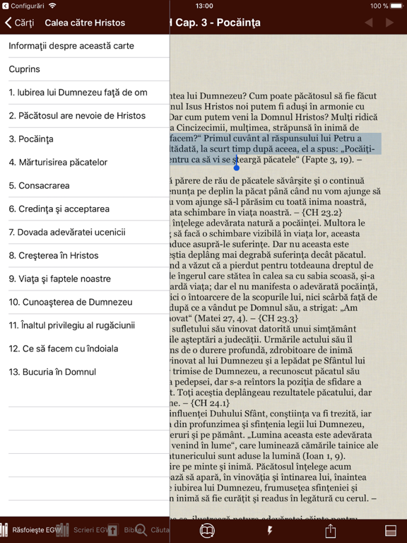 Navigare uşoară prin toată biblioteca EGW prin parcurgerea listei cu titlurile cărţilor, alegerea cărţii şi apoi a capitolului
