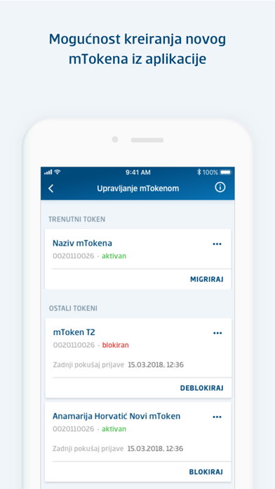 Sigurnu prijavu u usluge e-bankarstva omogućuje mToken - jednostavna opcija unutar mBankinga koja unosom 4-znamenkastog mPIN-a daje kontrolu nad vlastitim transakcijama. mToken je besplatan, a za njegovo je korištenje potrebno imati ugovorenu uslugu NetBanking ili FonBanking te potom preuzeti mBanking aplikaciju.