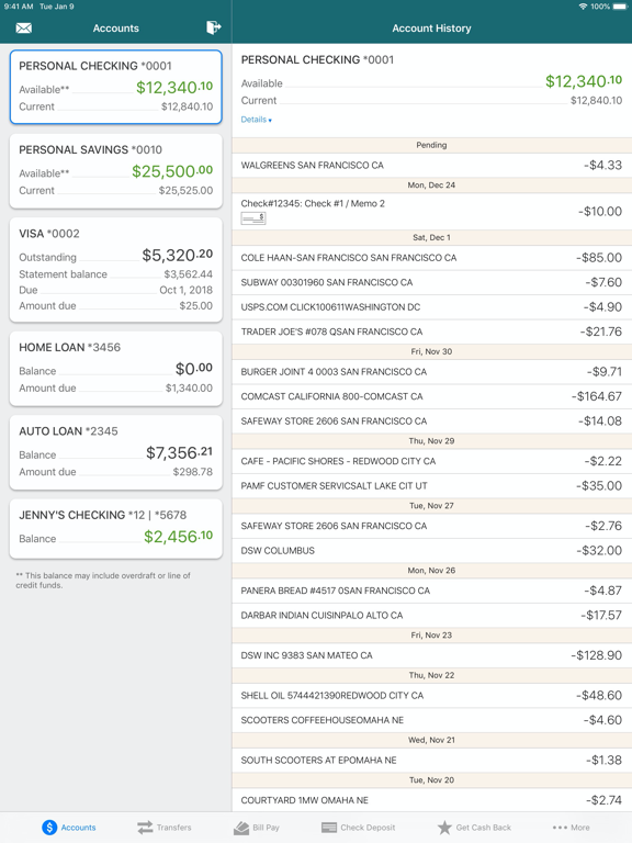 •Check account balances
