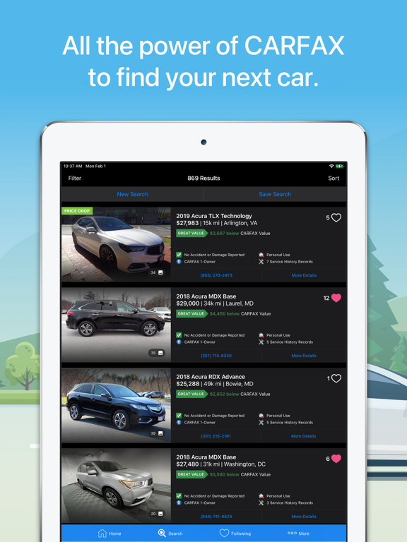 The FREE CARFAX – Find Used Cars for Sale app can help you find a great used minivan, SUV, truck, or sedan near you. This NEW FREE app gives you the power to shop for 1-Owner, Well-Maintained used cars and can help you avoid cars with accidents reported to CARFAX.