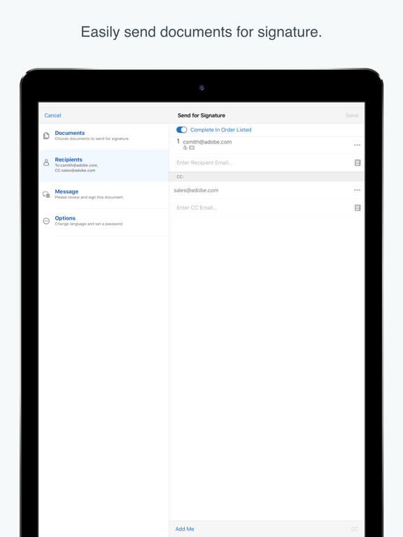 Adobe Sign for iPhone and iPad requires an active subscription with one of these Adobe offerings: