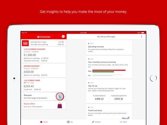 • See information about your Santander products to help you make the most of your money.