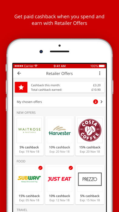 • Switch on Retailer Offers and get cashback at top retailers, just by spending with your Santander credit or debit card.