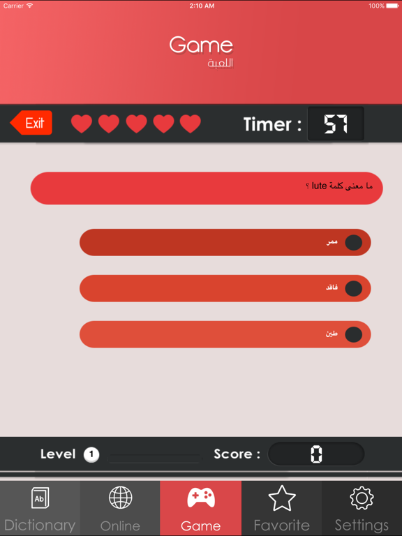 - لعبة لقياس معرفتك لمعاني الفردات العربية أو الإنجليزية
