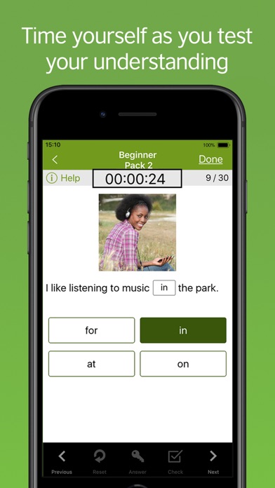 The app is suitable for learners of all levels and offers grammar activities at Beginner (CEFR level A1), Elementary, Intermediate and Advanced (CEFR level C2). Start at your level, and as your grammar accuracy improves, progress to the next.