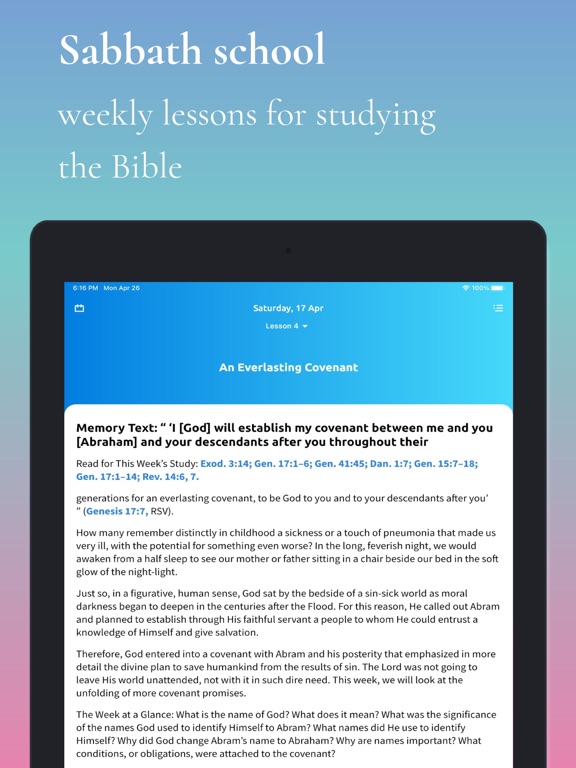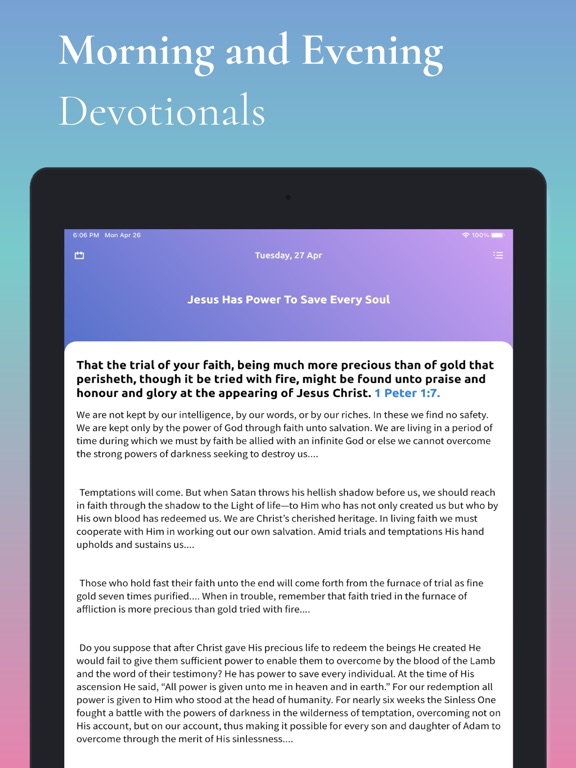 Read devotional readings of the Adventist church. Each day you can find something new for you in the morning and evening. Weekly lessons like Sabbath school will help you to study the Bible deeply and find hidden gems. And Bible reading plan will help to know Bible better itself.