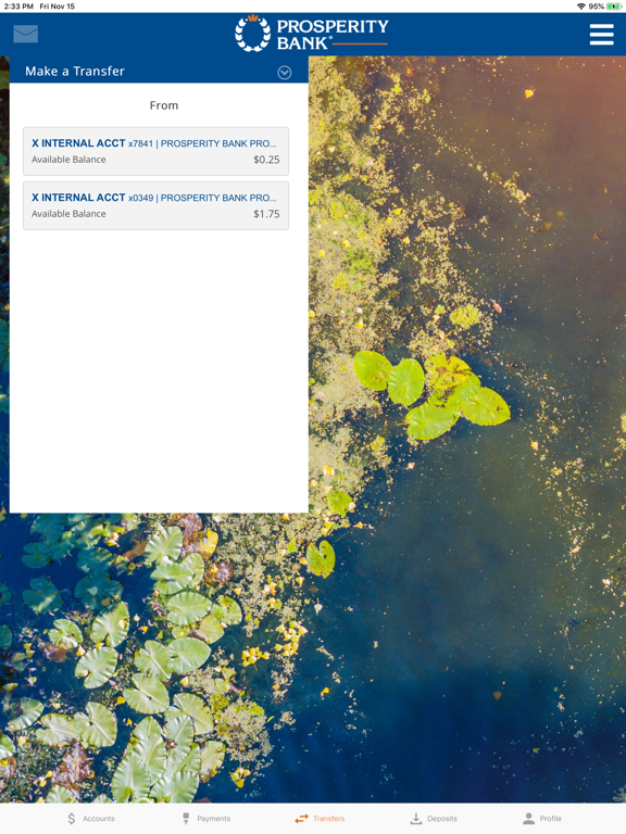 Start banking wherever you are with Prosperity Bank! Available to all Prosperity Bank online banking customers, Prosperity Bank Mobile allows you to check balances, make transfers, make deposits and find locations.