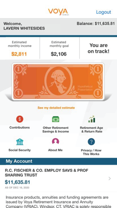 Whether you’re on the go a little or a lot, the Voya® retirement account app allows you to view and manage your retirement plan account whenever and wherever you want. Featuring the myOrangeMoney experience, you’ll see your estimated monthly income goal in retirement and progress toward that goal. You can also view the following:
