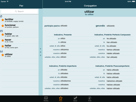 Our TOP RATED Spanish Conjugation app features "Favorites" bookmarking and iCloud synchronization, allowing you to zero-in on problem verbs, and store them for later review across all your iOS devices.