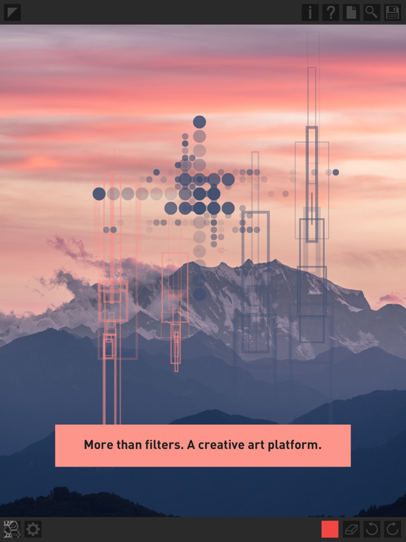 Paint unique effects onto your photos using 130 geometric styled brushes each completely customizable with 15 adjustable settings.