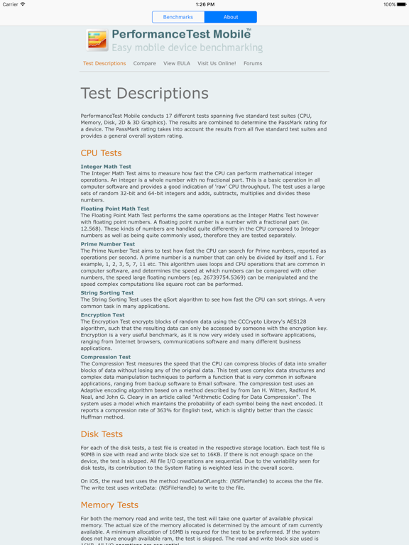 PassMark Software, the leader in PC benchmarks, now brings you benchmarks for mobile devices. Fast, easy to use, mobile device speed testing and benchmarking. PassMark PerformanceTest™ Mobile allows you to objectively benchmark a mobile device using a variety of different speed tests.