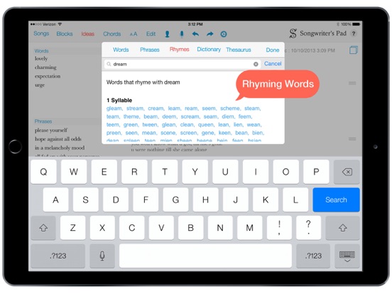 Songwriter's Pad™ is an invaluable creative tool for the songwriter. Everything a songwriter needs is now available in one easy to use app.