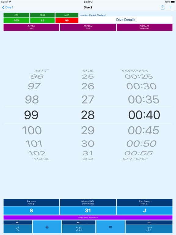 Dive Plan works for diving with air (21% Oxygen) filled tanks, as well as enriched air (nitrox from 21% to 40% oxygen). Please note that when diving on an altitude, special considerations must be taken into account, and different dive tables should be used.