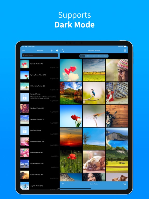 Photo Album is the best photo management solution to manage your photos and videos with strong Privacy features, lots of functionalities to Organize, create Slideshows and Sync your photos and videos.