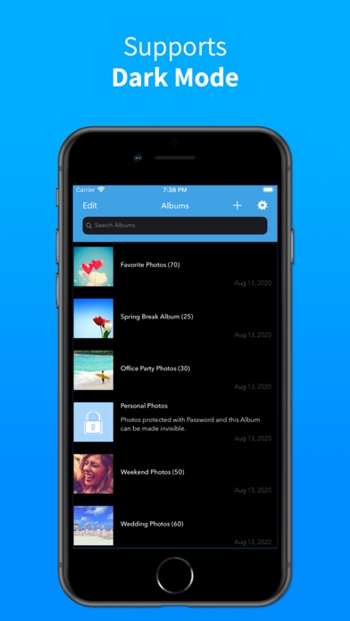 ▶ Customizable privacy levels, PIN at App launch, Password for private albums and make private albums invisible.