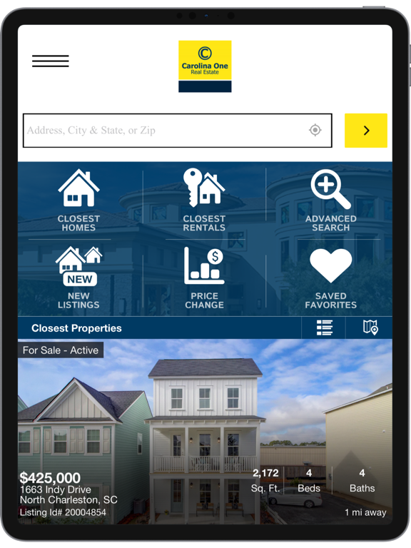 Use Carolina One Mobile anytime, anywhere to pull up homes for sale around you using the GPS search, or find homes based on address, city or zip code. Carolina One Mobile will show you all the details you want to know about a property, including price, square footage, estimated mortgage, taxes, features, descriptions, pictures, maps and more! Save your favorite homes to view later. You can also text or email homes to your family and friends.