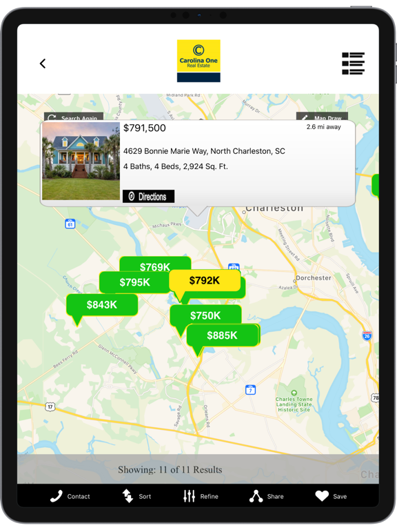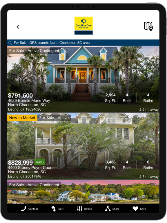 Carolina One Mobile brings the most accurate and up-to-date real estate information right to your phone! With Carolina One Mobile, you have access to all homes for sale and MLS listings throughout the Metro Charleston area.