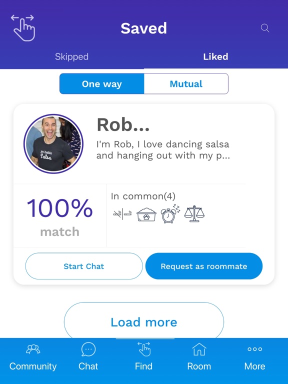 With RoomSync, you can find and request your own roommate. Use a variety of tools to find the perfect match including: - Join, search and match from your device - Get a % compatibility score for each possible roommate - Swipe right to like and get notified when they swipe back - Say hello on Instagram, Snapchat, Twitter and more - Send direct chat messages - Choose your own roommate