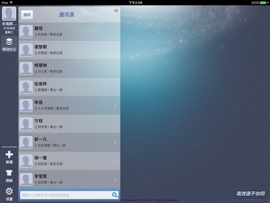 Users can read and deal with workflow、news、contacts and other kinds of information of OA by Weaver’s “E-Mobile” plarform on iPhones and iPads.