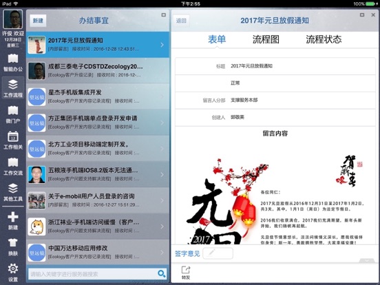 “E-Mobile”针对iPhone和iPad用户设计, 帮助已经拥有泛微“协同移动办公平台”的用户在iPhone和iPad上进行办公操作, 以满足他们协同、移动办公的需要。