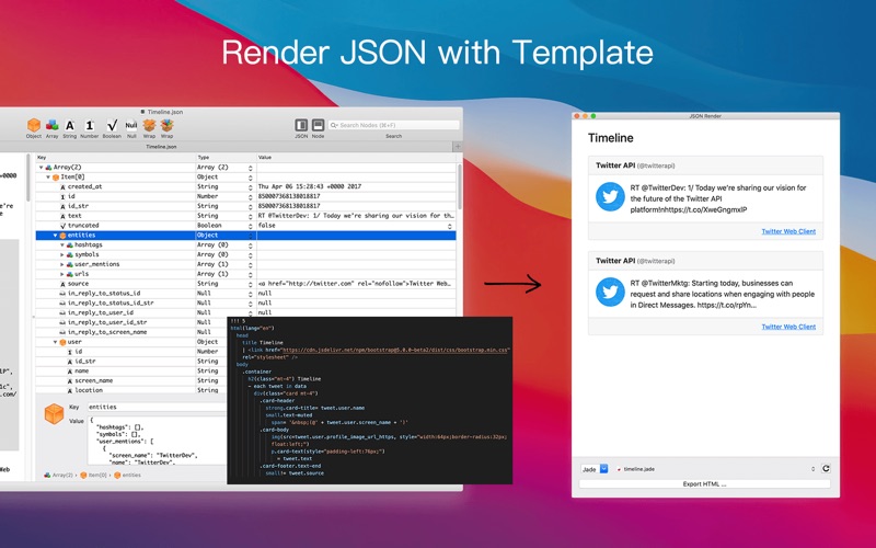 Power JSON Editor is a powerful JSON editor for developers. By Power JSON Editor, developers can easily import JSON data from web, or import plist data as JSON, and also can export JSON to plist file. With support of Plug-in, Power JSON Editor is also easily to extend its functions, currently supports rendering JSON data with Jade template.