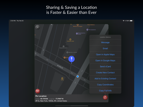 - Can share an exact location everywhere by using coordinates