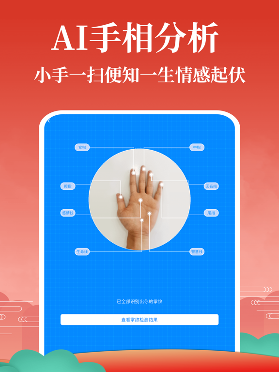 • 掌纹秘密:此模块包含有指纹算命与掌纹秘密功能,根据您手掌和手指上的纹路来推测您的命理及相关的性格特征。