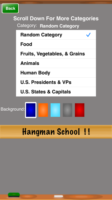 Hangman ! is a great way to test your vocabulary skills and have fun at the same time. Select the category in the "Settings" screen. If you need help with a word, press the "Hint" button.