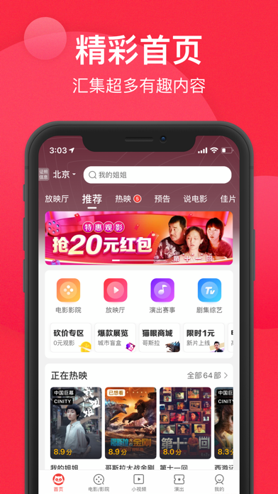 猫眼,不只是电影。我们是集影视娱乐信息、在线购票、影评剧评等服务的一站式泛娱乐平台,不论电影电视还是综艺,都可以找到你喜欢看的内容,看片追剧和粉爱豆变得更方便。