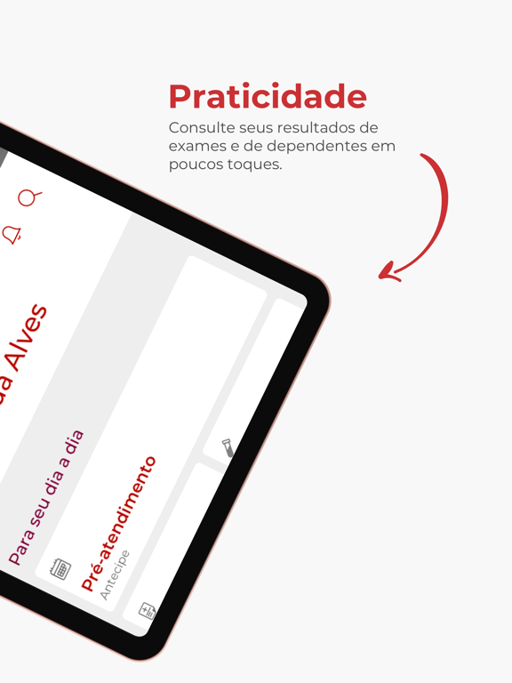 • Laudos e históricos de exames, com possibilidade de salvar o PDF, compartilhá-lo e imprimir