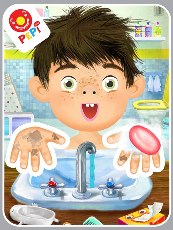 PEPI BATH is a role-play game where children learn about hygiene in a fun way.