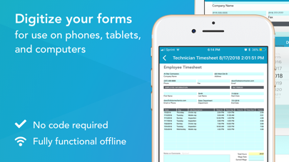Digitize your paper forms for use on phones, tablets and computers– no IT or coding required. Rapidly collect field data, access mobile forms in real-time, generate and share professional PDFs, submit work from any location, store completed forms in the Cloud, and route data to integrated platforms. Mobile forms can even be filled out offline.