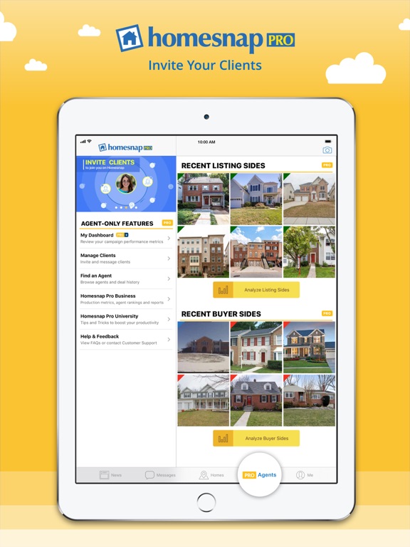 Find potential listings using our Likelihood to List Score, public record heatmaps & filters, and advanced homeowner profiles. Homesnap Messages was specifically built for real estate agents. For your buyers, keep track of the homes you’ve discussed in one place. For your listings, all related conversations appear on the listing page. Homesnap Pro agents can message any other agent in their MLS in a single tap.