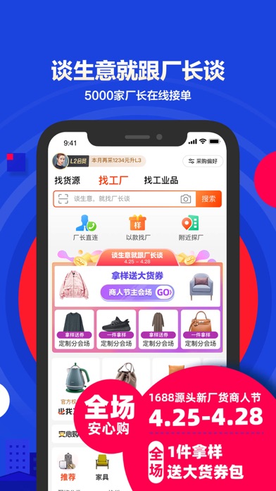 商家端:从1688百万商家中甄选而出拥有50万源头优质一手货源,长期提供优质售前售后服务