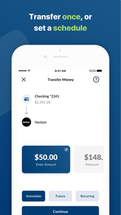 • Enroll in BillPay from the app, see your eBills, and schedule payments — both one-time and recurring