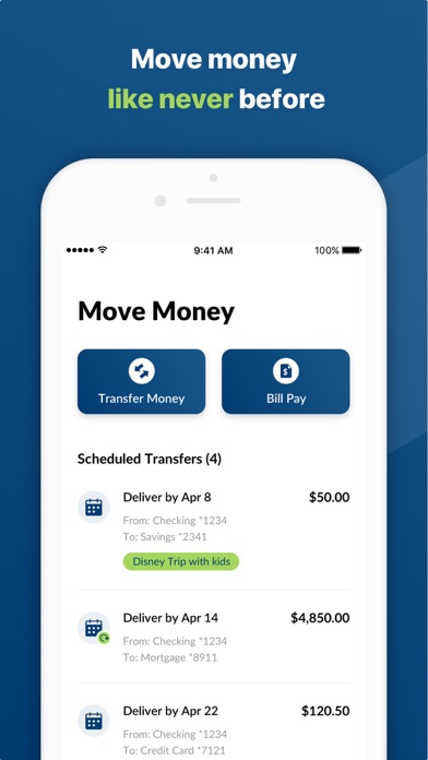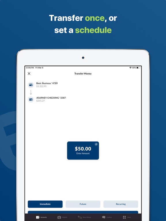 • Schedule and edit one-time or recurring transfers