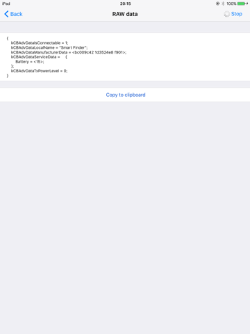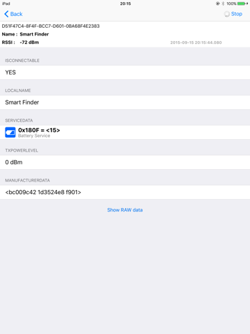 Bluetooth Smart Scanner is the fastest app to find all Bluetooth Low Energy (also known as Bluetooth 4.0 or Bluetooth Smart) devices around you. It shows detailed information that Bluetooth Low Energy devices advertise, including device name, signal strength (RSSI), supported services, battery level, etc.