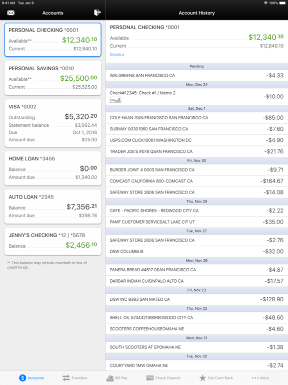 1. Check account balances, view recent transactions, and transfer money between accounts.
